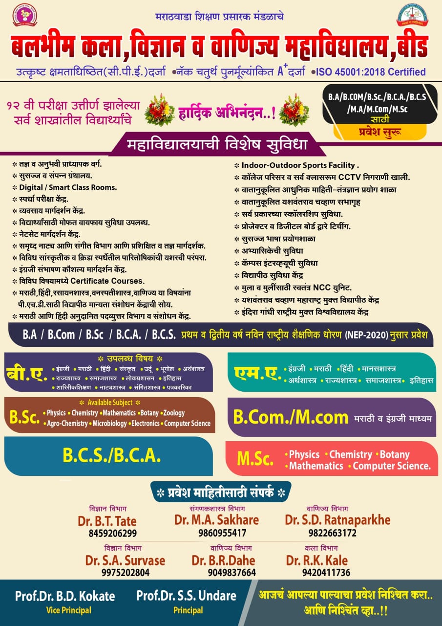 Welcome to Balbhim Arts, Science & Commerce College, Beed
