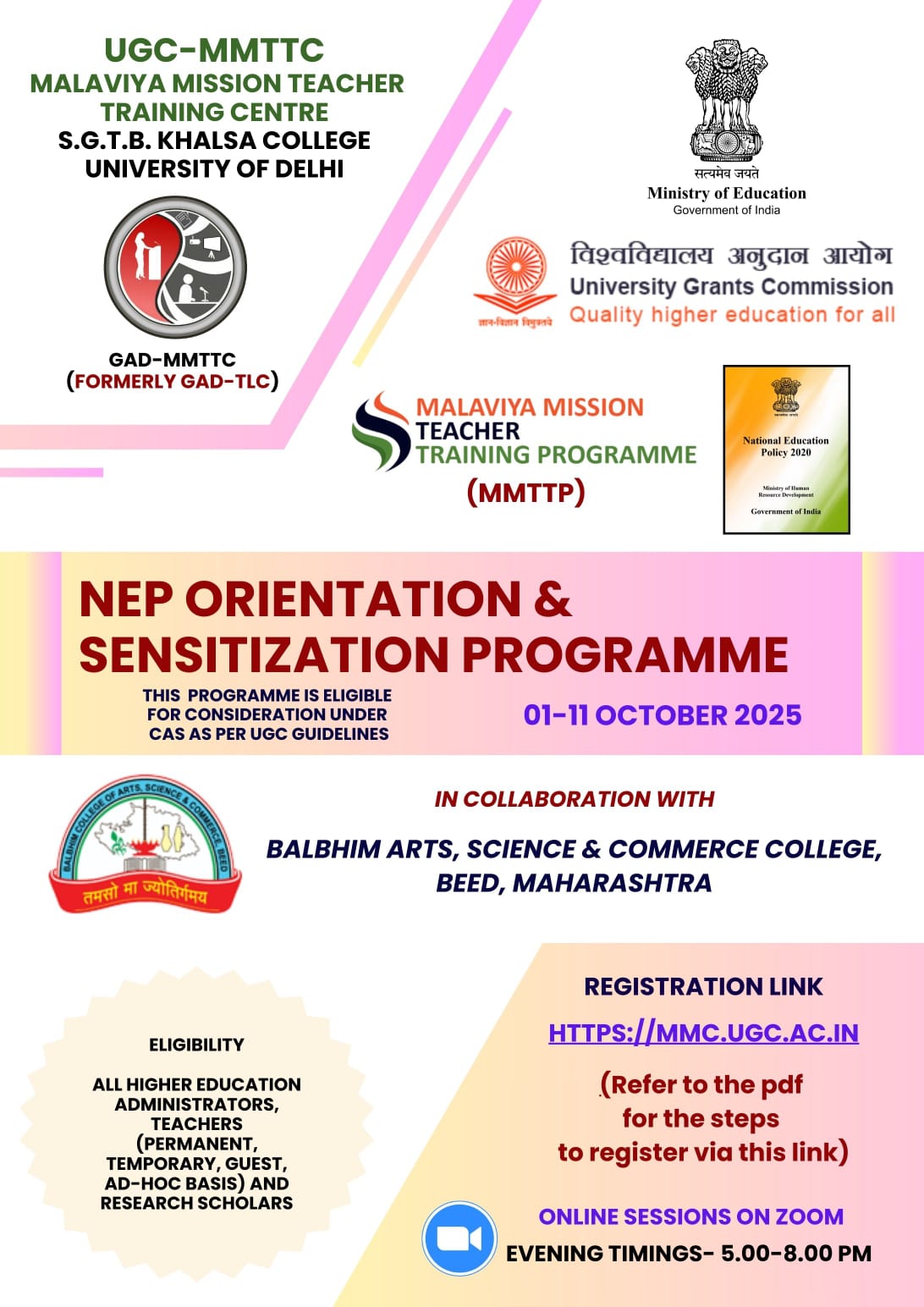 - NEP ORIENTATION & SENSITISATION PROGRAMME organized by MMTTC SGTB Khalsa College In Collaboration with Balbhim Arts,Science and Commerce College,Beed